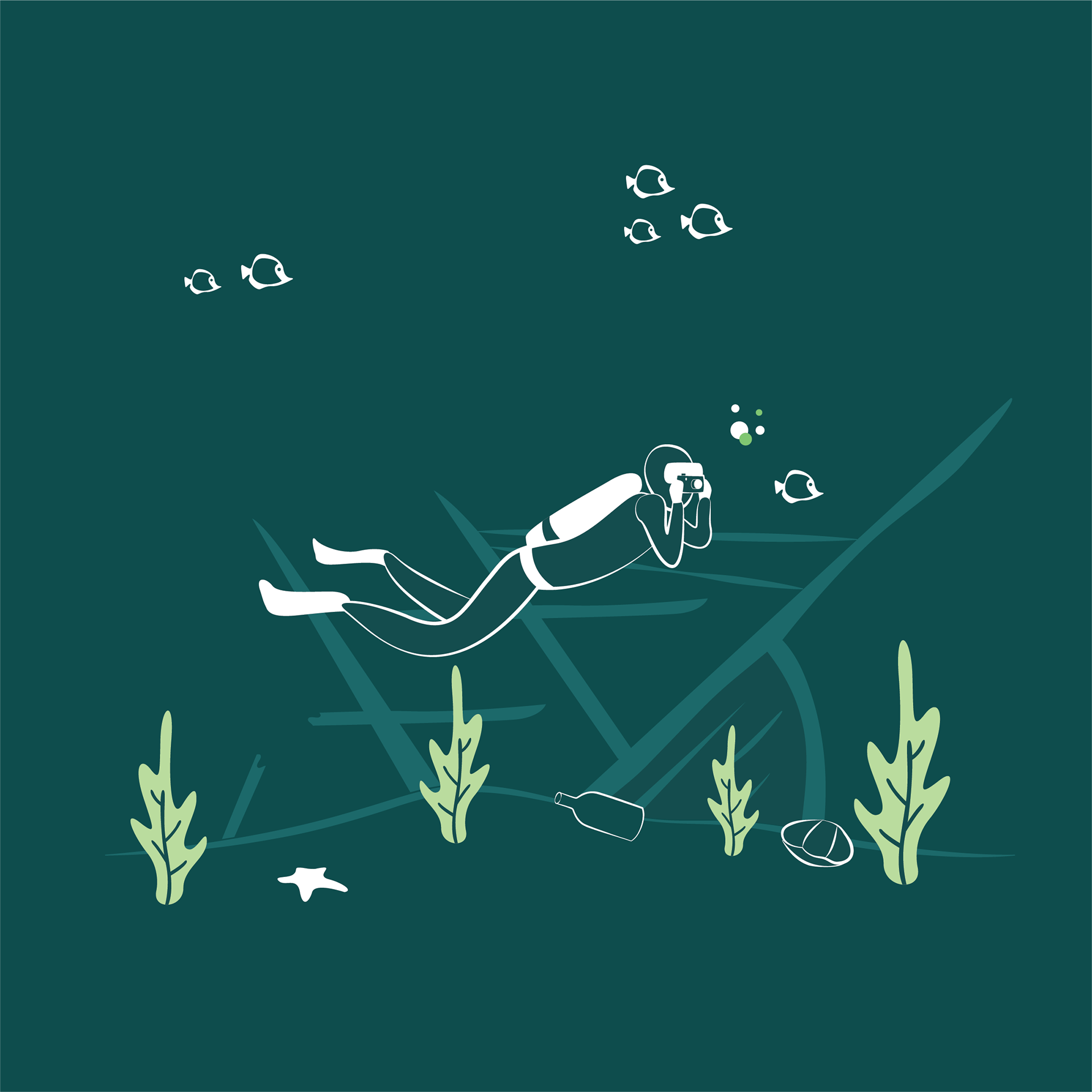 I wanted to create something that could provoke the paranoia of feeling unknown creatures lurking in the deep darkness with just simple yet appealing imagery, so I chose the concept of a gigantic sea monster slowly appearing behind a scuba diver. The experience is enhanced by the magic of heat changing mug.